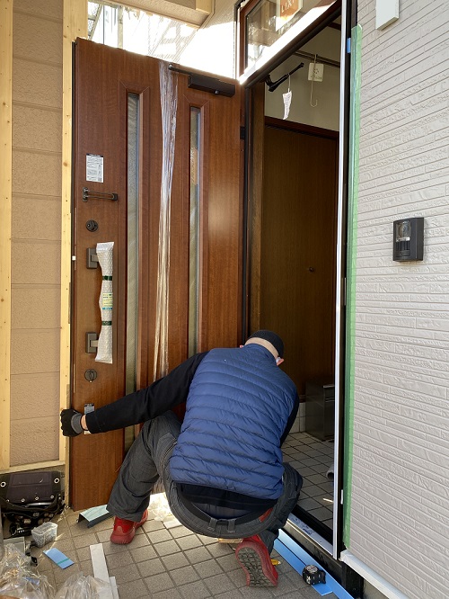 既存の扉を外し、新しいドアの枠をはめこみます。